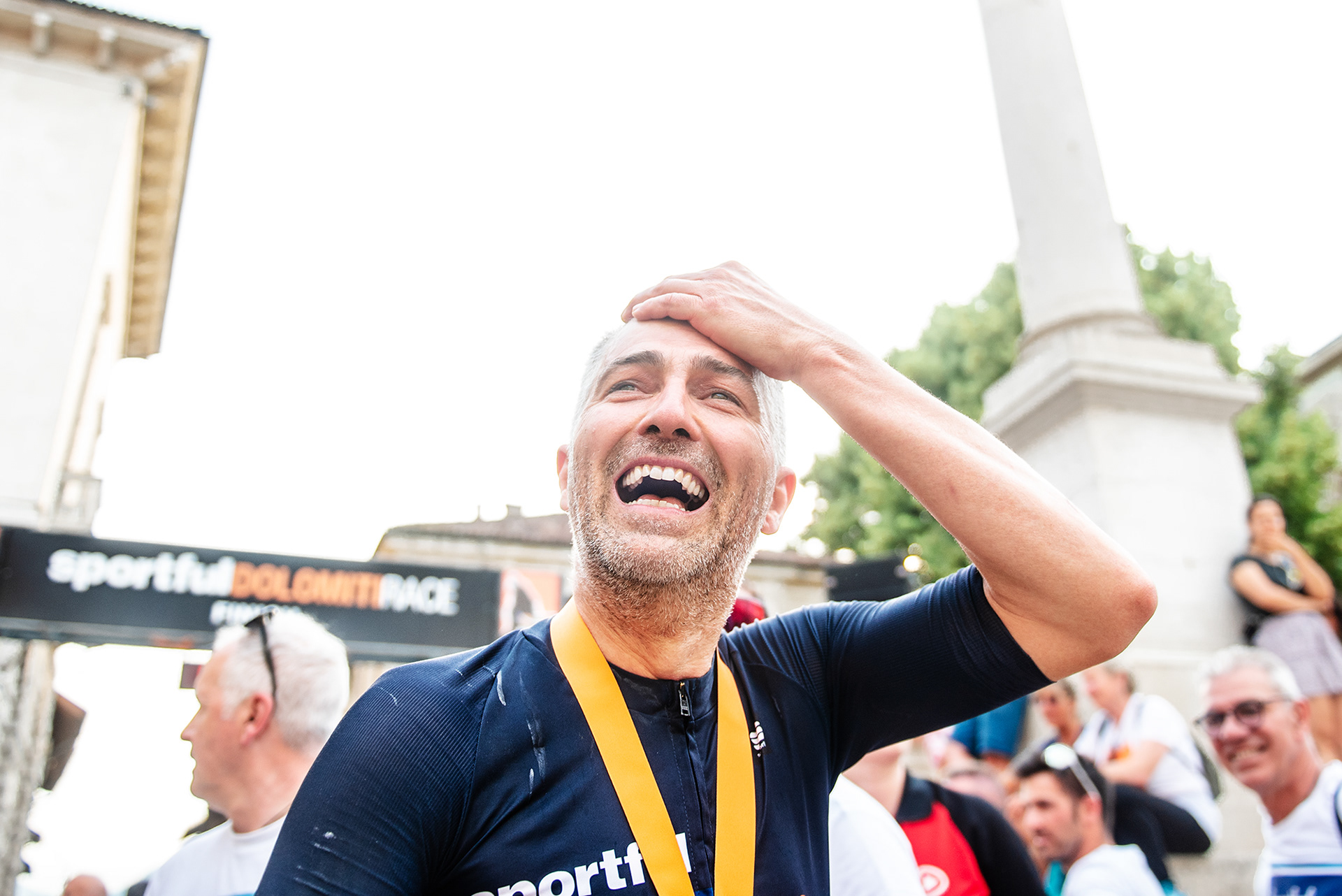L'inevitabile immobilismo fotografico che richiede il lavoro alle dipendenze di Sportograf porta con sé una sorta di urgenza di emozioni sensoriali che solo i momenti dopo l'agognata linea d'arrivo regalano.