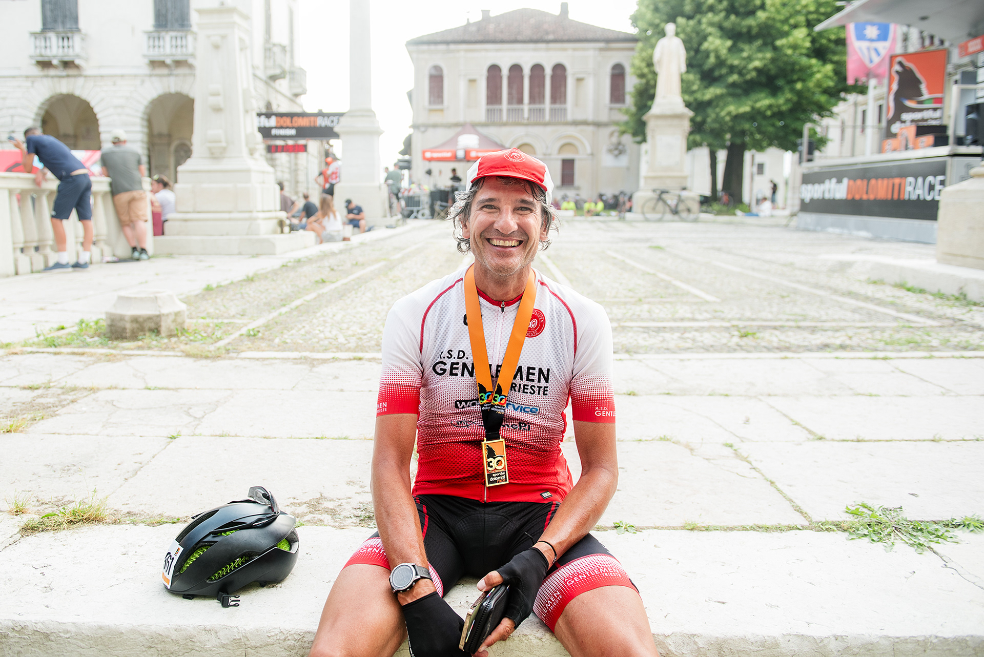 Il gruppo belga, aizzato per una foto al grido di "You are Belgian, show me the beers!", la coppia di inglesi immortalata al volo per il più classico e passionale dei baci, l'amatore distrutto ma infinitamente soddisfatto di aver completato il percorso, seppur fuori tempo massimo, chiedendomi se qualcun altro dovesse ancora tagliare il traguardo, così come la signora Rosa, dedita alla nobile causa dei volontari per tutte e trenta (!!) le edizioni della Sportful che mi chiede una foto in mezzo a delle bellissime siepi di rose poiché, per l'appunto, il suo nome è quello del fiore.