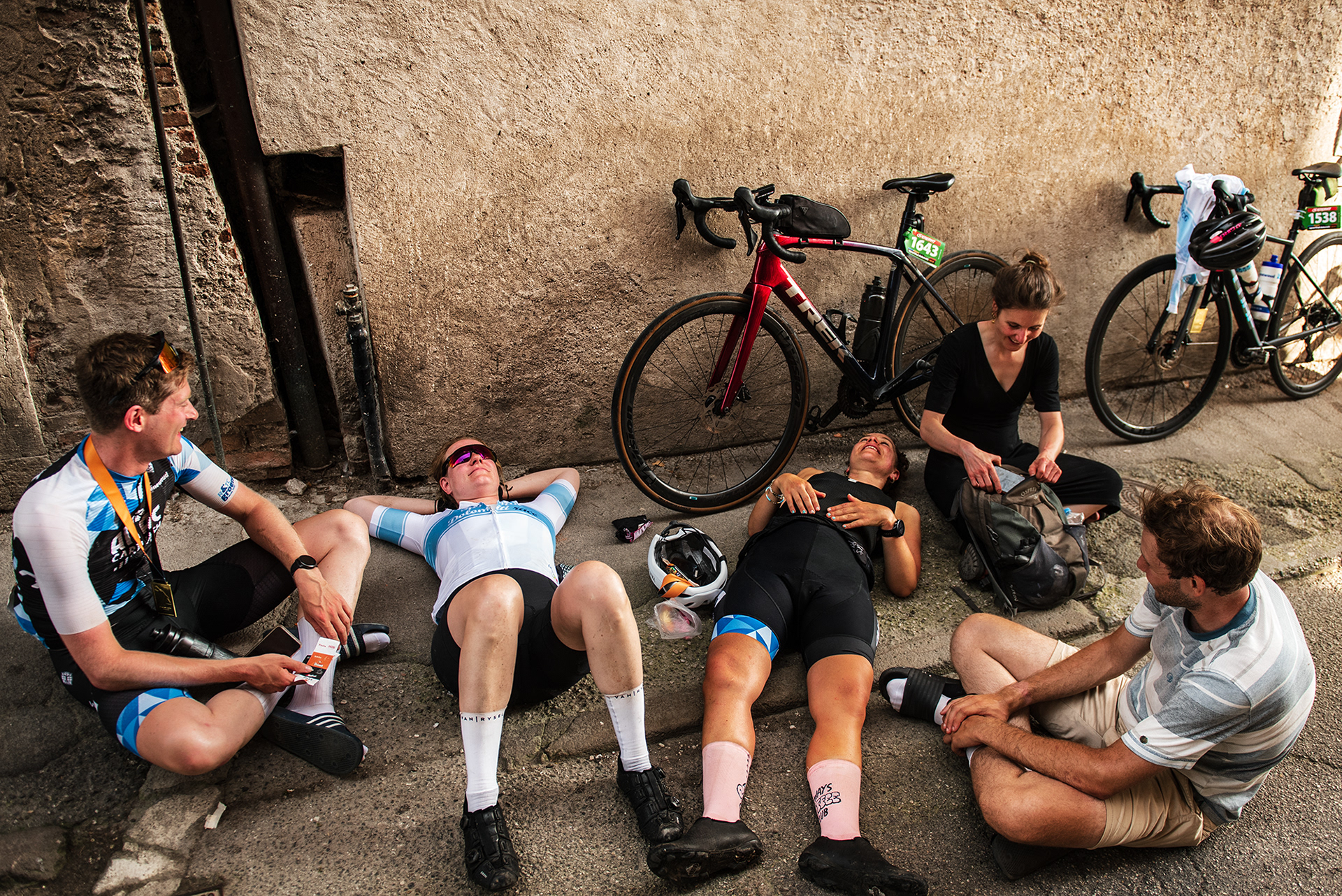 Questi momenti sono sicuramente i più interessanti da fotografare. Espressioni che raccontano la corsa più di un qualsiasi video di highlights pubblicato sui social. Sguardi che si incrociano, volti che si riconoscono dopo essersi già visti lungo il percorso, voci e lingue da ogni parte del mondo. Odori di sudore e fatica che si mischiano a quelli della birra appena spillata.
